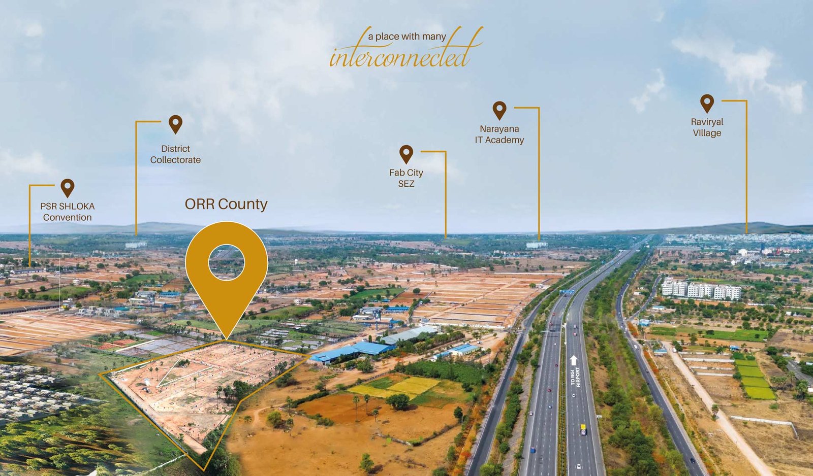 ORR County from Sri Karthikeya Projects offers beautifully crafted residential villas in 13.5 acres, ranging from 150 to 972 sq.ft, blending smart design, affordability, and premium living in a gated community just 500 meters from ORR Exit 13 and near Rajiv Gandhi International Airport, Hyderabad.